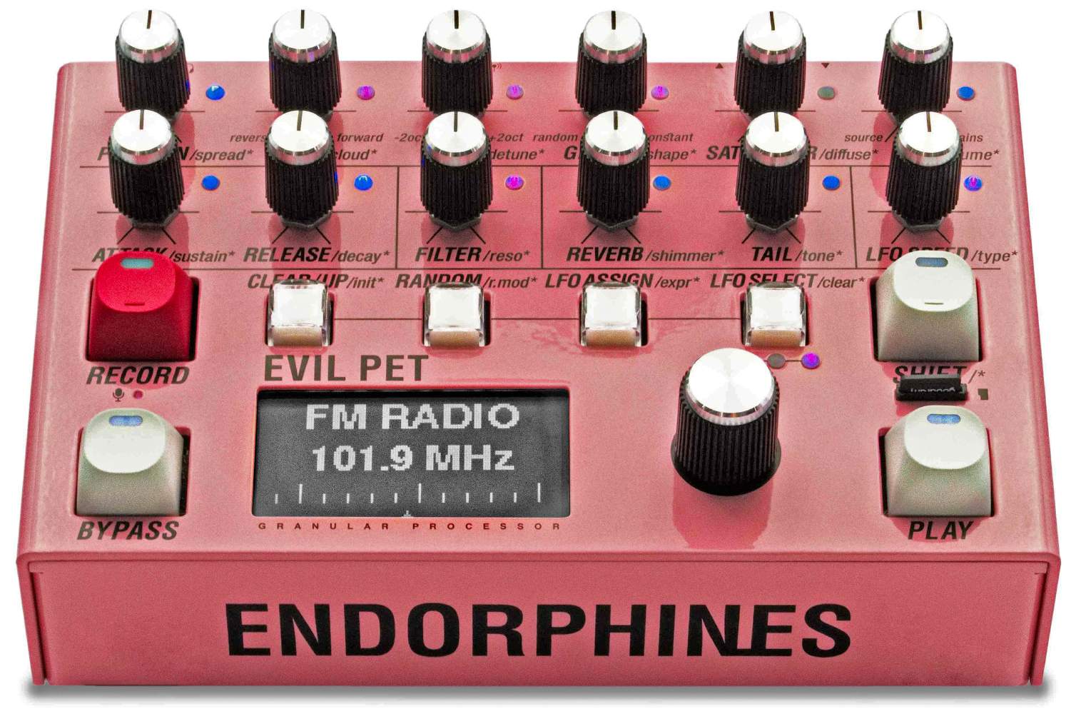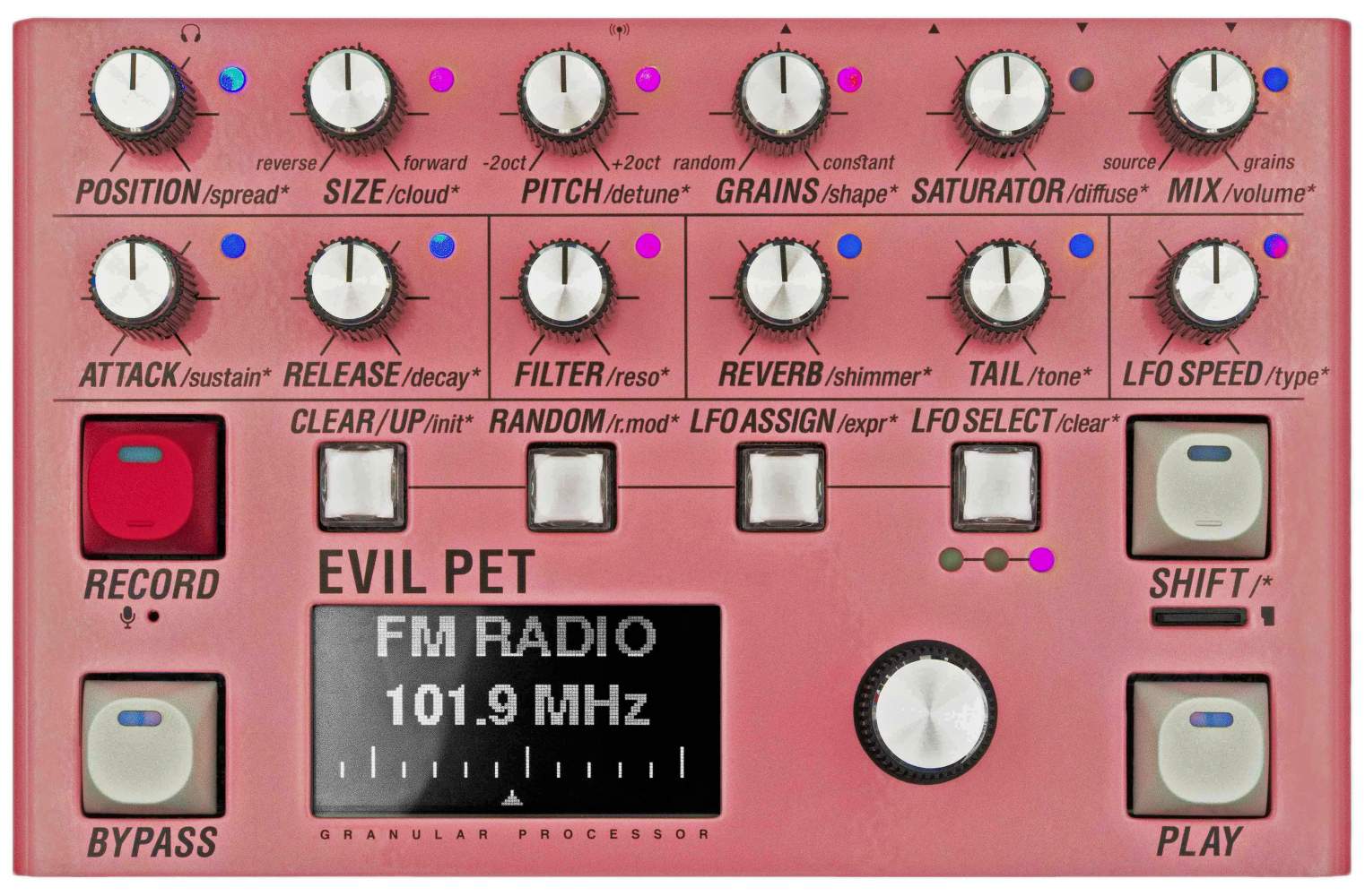EVIL PET can be a polyphonic synthesizer, a granular effect unit, a radio FM tuner, a reel-to-reel recorder, and more.