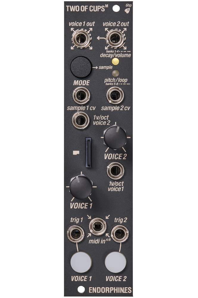 The Two of Cups M/MIDI is a two-voice sample player with eight banks.