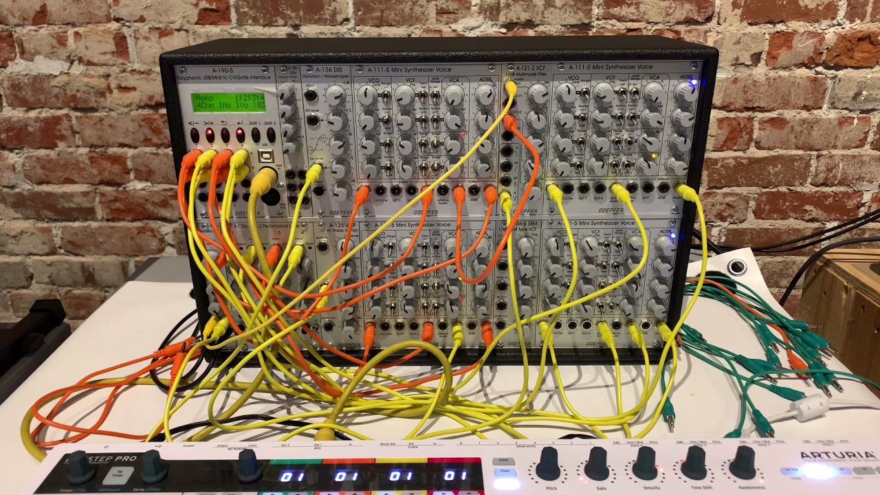 Dies ist die größere Version des Doepfer Polyphonic Systems, die 4 unabhängige Synthesizer-Stimmen für die Erstellung von Patches mit größerer Tiefe bietet.