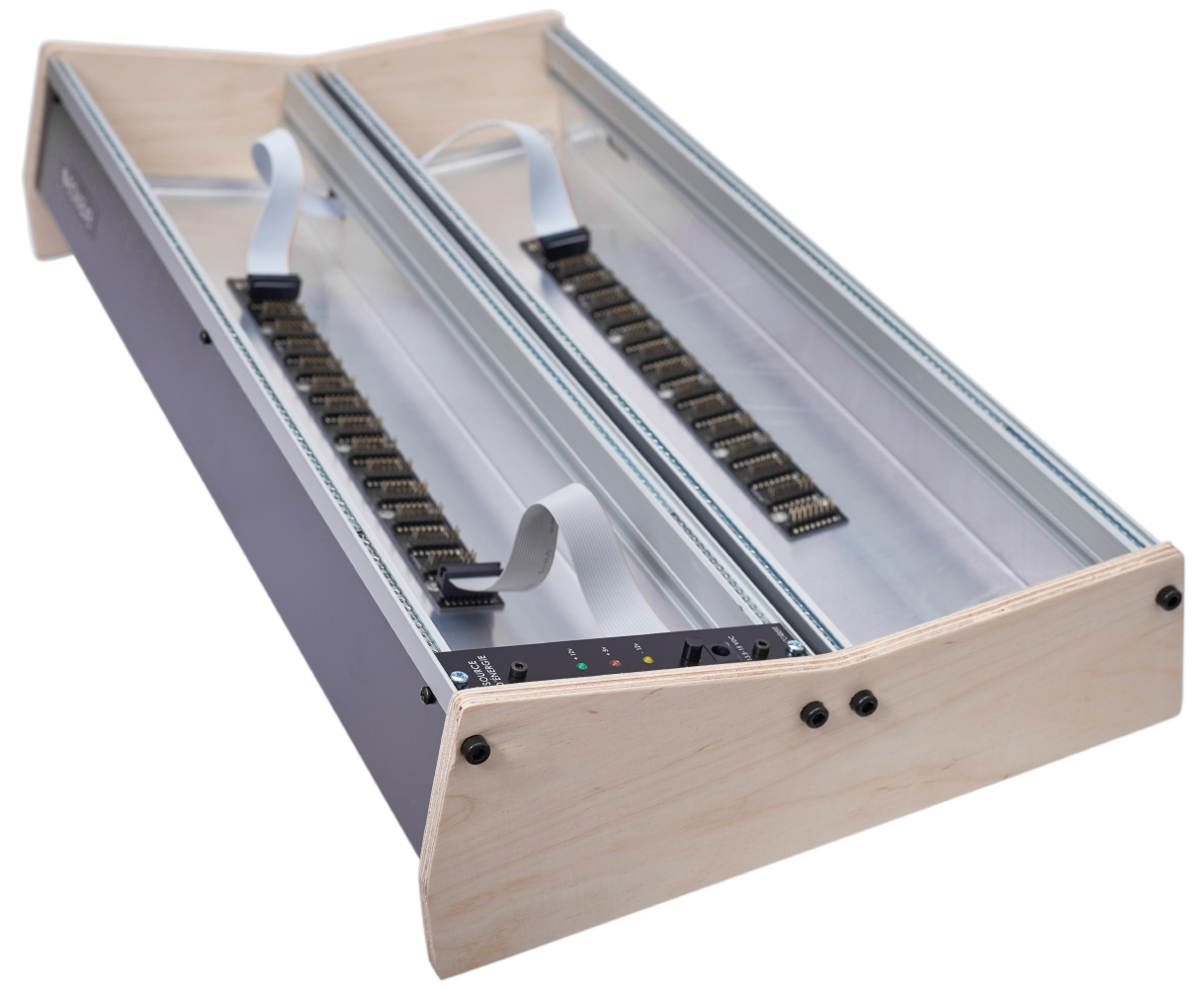 Preiswertes 2x 104TE Winkelcase mit Multiplex-Seitenteilen, inklusive Stromversorgung +/- 12V (je 2,5A) und +5V (2A), das Spannungsversorgungsmodul beansprucht 4TE. Maximale Einbautiefe für Module: 5,4cm. Formschön und preiswert.
