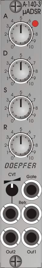 Die Ausgangsspannung der Hüllkurven beträgt 0 - 10V. Die Attack/Decay/Release-Zeiten liegen ca. zwischen 1ms und 30s.