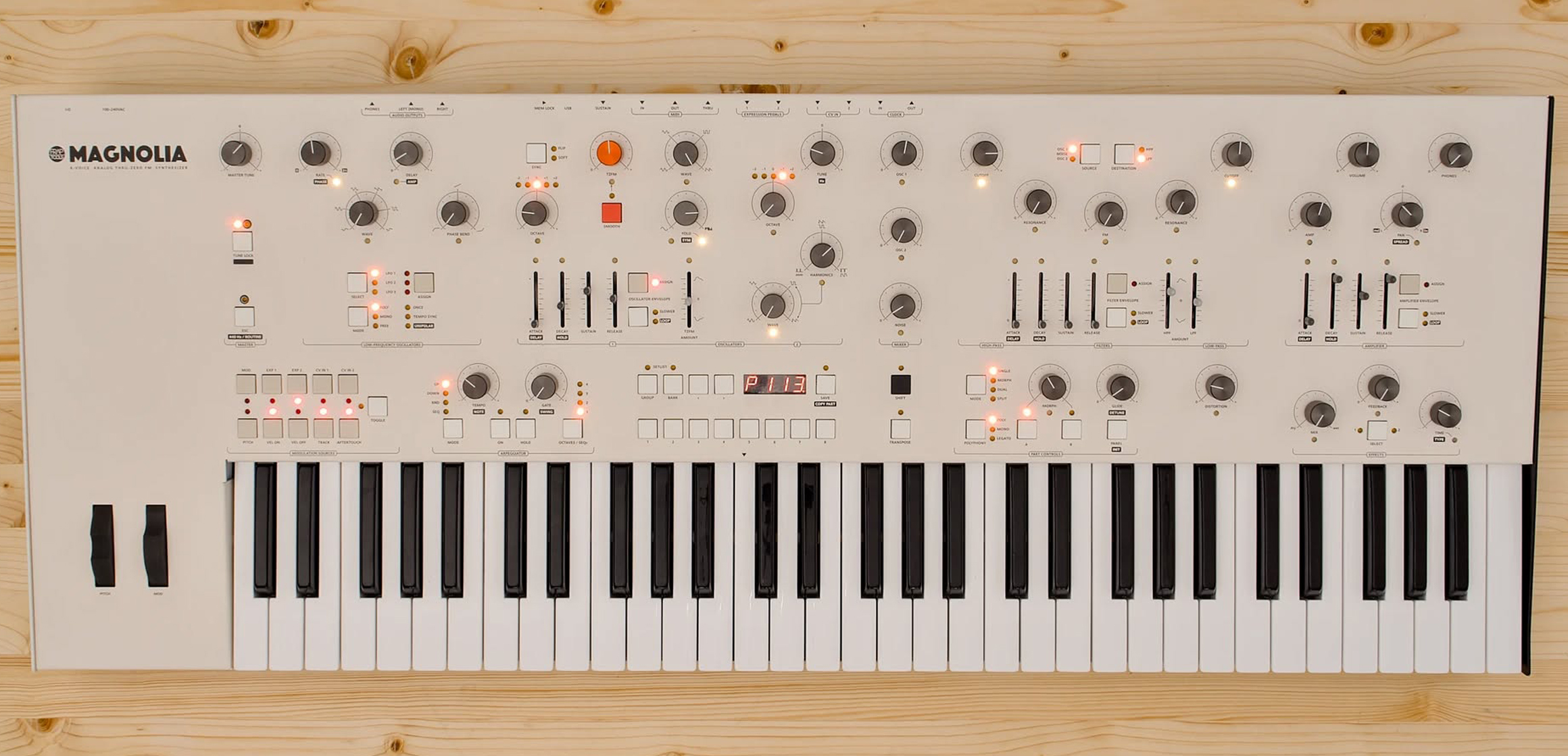 Der Magnolia ist das neueste Flaggschiff unter den Synthesizern von Fraptools. Er verfügt über acht analoge Stimmen mit jeweils zwei Oszillatoren (Carrier und Modulator) sowie zwei Filtern (Hochpass und Tiefpass). Wie jeder moderne Flaggschiff-Synthesizer verfügt er über eine Fatar-Tastatur mit polyphonem Aftertouch. Der Carrieroscillator verfügt über einen Through-Zero Oscillator, der die Erzeugung präziser, sidebandreicher analoger FM-Sounds ermöglicht.
