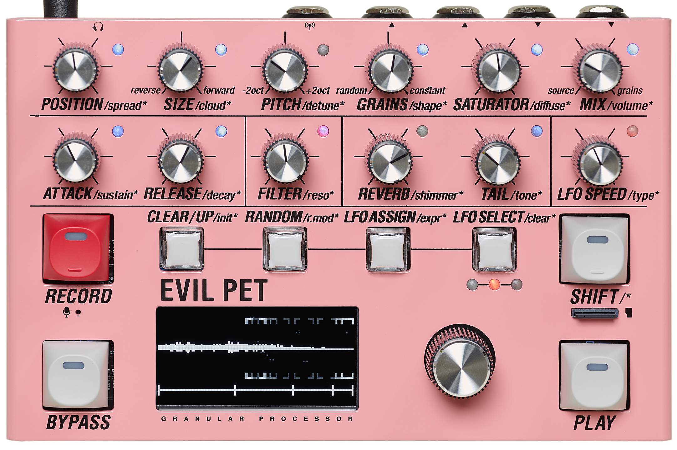 EVIL PET transforms incoming audio into tiny grains and plays them in new, playful, or unexpected ways. Stretch, shrink, or flip the grains to create unique sounds, textures, and effects. Layer grains to make dreamy, glitchy, or swirling soundscapes. It works with any input - guitar, voice, synth, or drums - turning ordinary sounds into something magical.