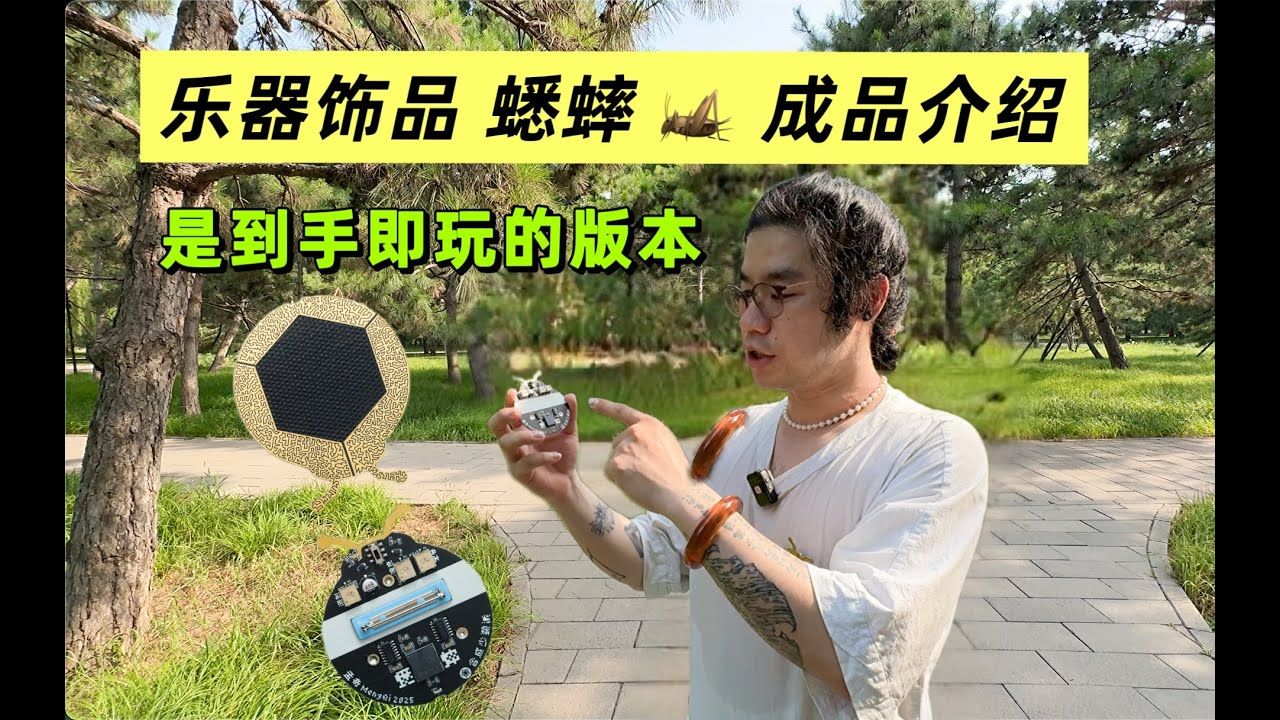 The Cricket is a solar-powered musical instrument jewelry. It chirps in the sun and can be played by shading. The patterns on its front are not only for decoration but also touchable. The three areas control three oscillators respectively. Pressing them will increase the pitch, change the timbre, and speed up the rhythm. There is also a touch point on the back that will interfere with the output and produce noise. A clip can be attached to the back to wear it on clothes or bags. You can also put it in the grass, and you'll feel closer to summer.