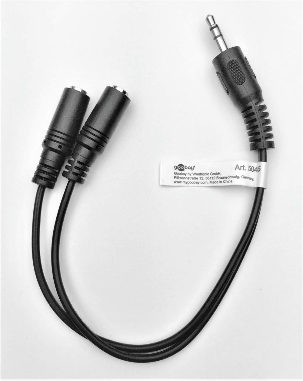 Adaptor cable: 3,5 mm stereo male, 2x mono female