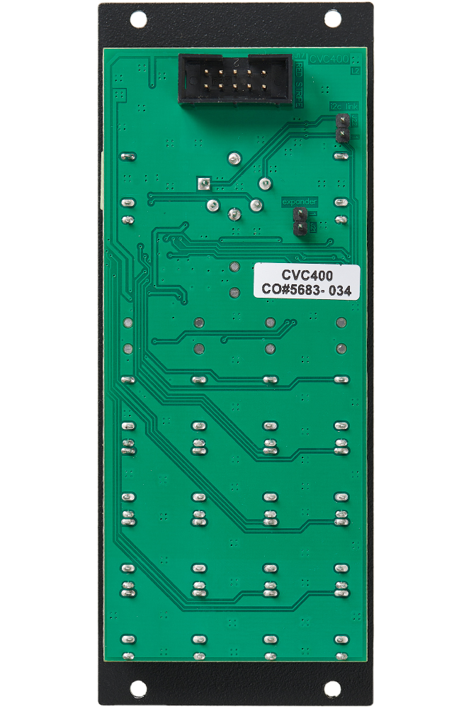 The hi-res Control Voltage Converter allows to fully exploit the fast data rates and ranges of the Continuum, ContinuuMini, EaganMatrix Module, and ExpressiveE Osmose.  A single CVC provides 16 control voltages (4 voices), on 3.5 mm TS jacks.